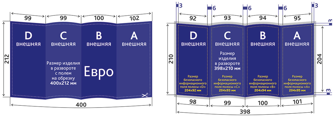 Размер безопасного информационного поля: 204x194 мм / 204x93 мм (где будет текст, логотип);