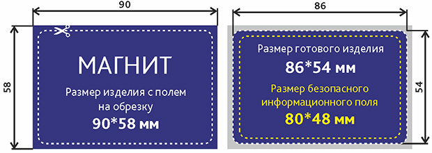 Размер магнита с припусками на обрез 90x58 мм (т.е. по 2 мм с каждого края);
